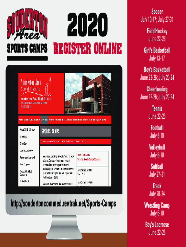2020REGISTER ONLINESoccer July 1317; July 2731 Field Hockey June 2226 Girl\'s Basketball July 1317 Boy\'s Basketball June 2226; July 2024 Cheerleading June 2226; July 2024 Tennis June 2226 Football