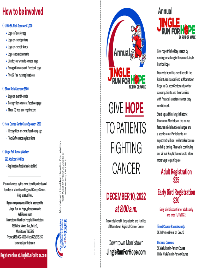 How to be involvedAnnualm Little St. Nick Sponsor: $1,000Logo in Race Joy apology on event postersLogo on event tshirtsLogo in advertisementsLink to your website on race precognition on event Facebook