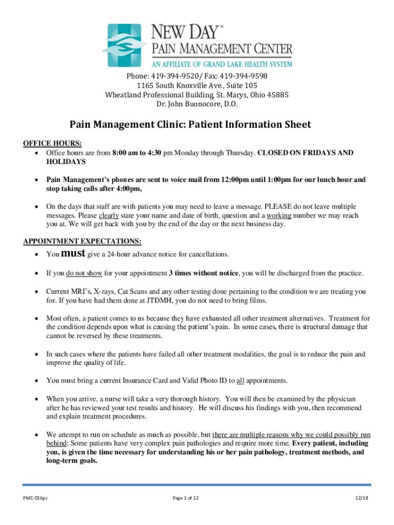 Phone: 4193949520/ Fax: 4193949598 1165 South Knoxville Ave., Suite 105 Wheat land Professional Building, St. Mary's, Ohio 45885 Dr. John Burnoose, D.O. Pain Management Clinic: Patient Information