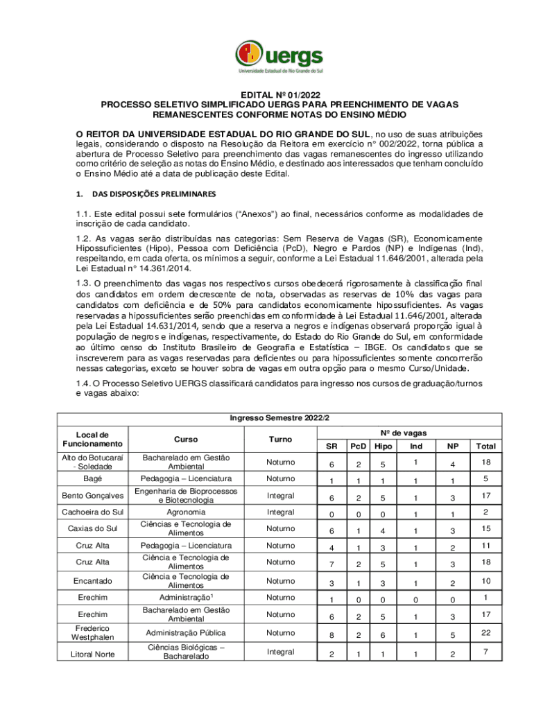 PROCESS SELECTIVE SIMPLIFIED ERGS PARA PREENCHIMENTO DE VEGAS