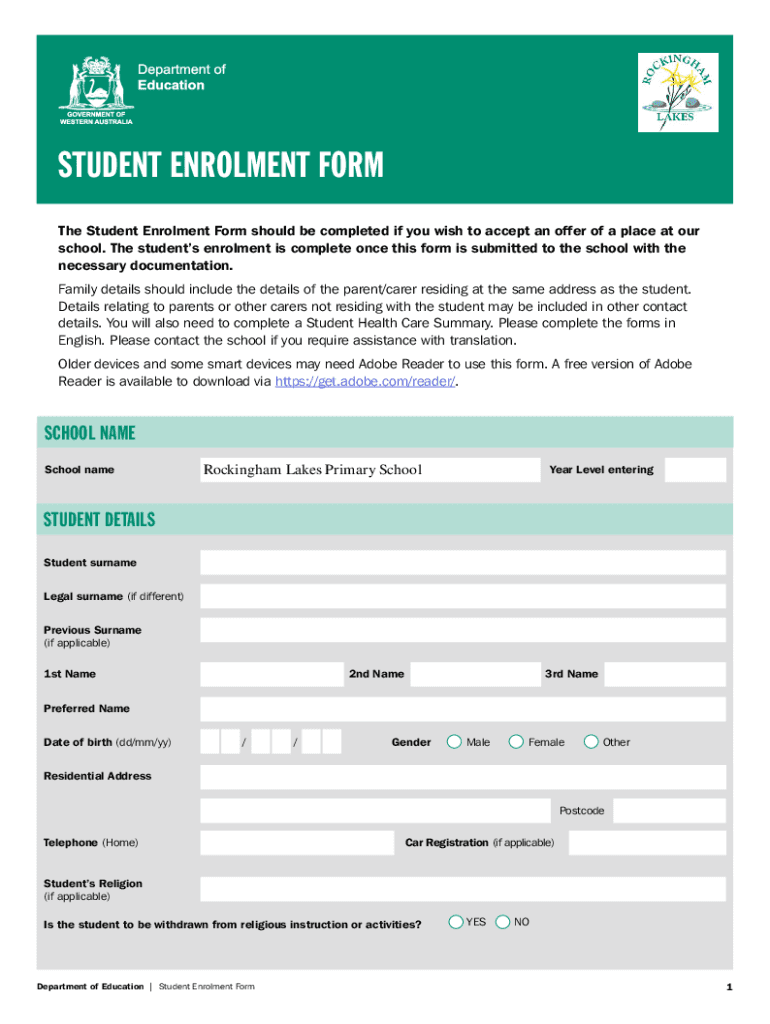 STUDENT Enrollment From The Student Enrollment Form should be completed if you wish to accept an offer of a place at our school. The students' enrollment is complete once this form is submitted to