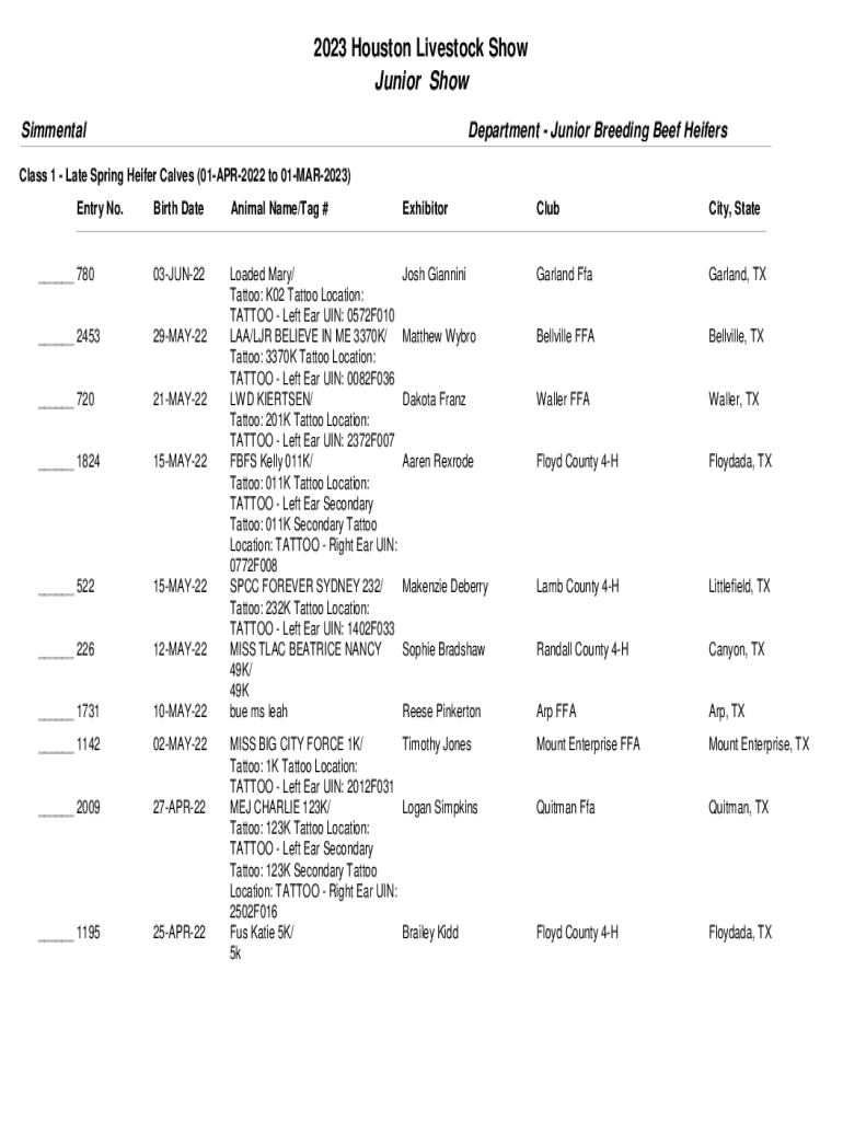 SimmentalDepartment Junior Breeding Beef HeifersClass 1 Late Spring Heifer Calves (01APR2022 to 01MAR2023)