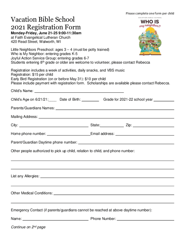 Vacation Bible School 2021 is not the form you're looking for?Search for another form here.