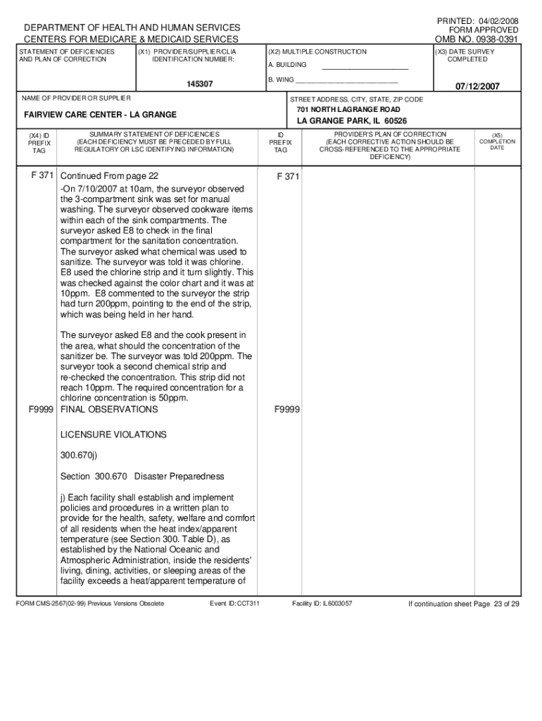 PRINTED: 04/02/2008 FORM APPROVEDDEPARTMENT OF HEALTH AND HUMAN SERVICES CENTERS FOR MEDICARE & MEDICAID SERVICES STATEMENT OF DEFICIENCIES AND PLAN OF CORRECTION(X1) PROVIDER/SUPPLIER/CIA IDENTIFICATION