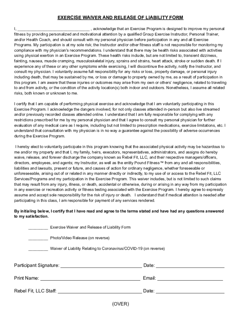 Get the free WAIVER & RELEASE FORM Because physical exercise ...