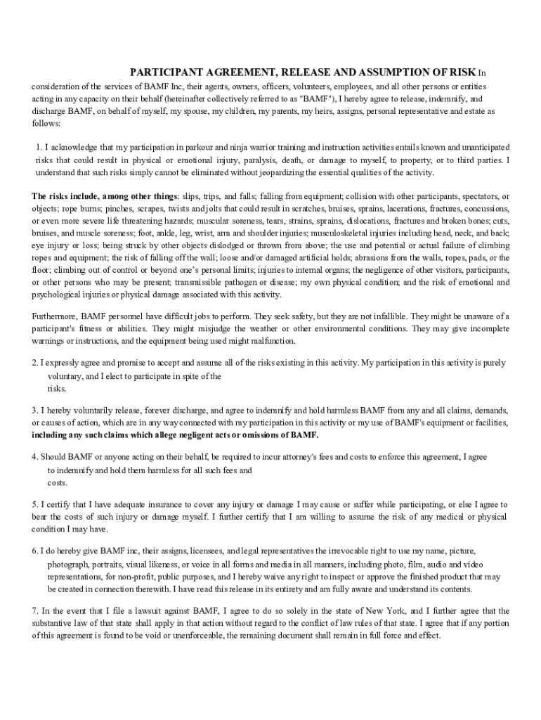 PARTICIPANT AGREEMENT, RELEASE AND ASSUMPTION OF RISK Inconsideration of the services of BARF Inc, their agents, owners, officers, volunteers, employees, and all other persons or entities acting in