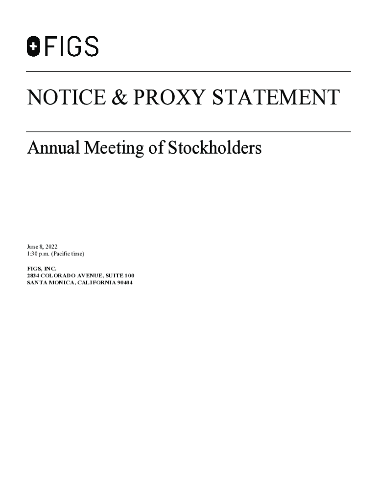 NOTICE & PROXY STATEMENT Annual Meeting of Stockholders June 8, 2022 1:30 p.m. (Pacific time) FIGS, INC. 2834 COLORADO AVENUE, SUITE 100 SANTA MONICA, CALIFORNIA 90404April 26, 2022 To Our Stockholders: