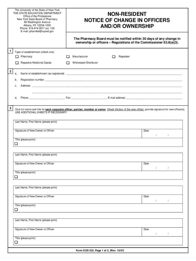 Get the free NON-RESIDENT NOTICE OF CHANGE IN OFFICERS AND/OR ...