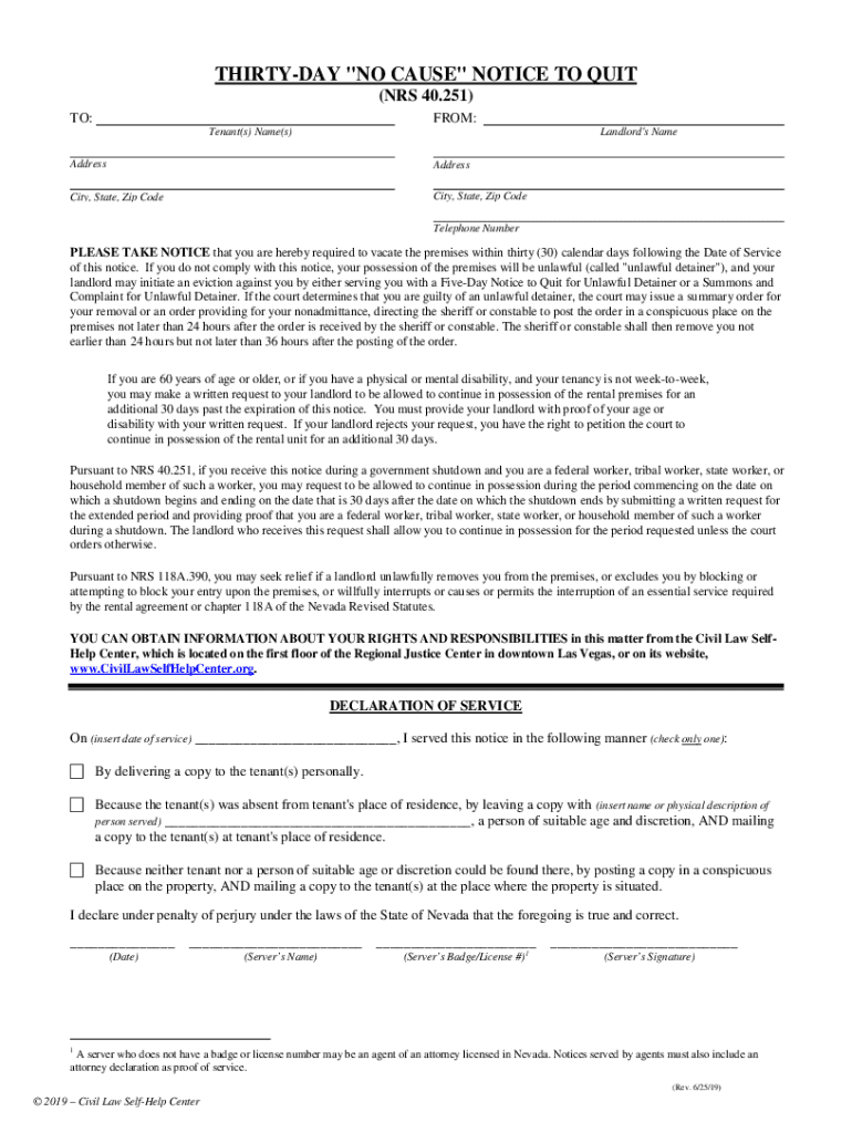 Get the free THIRTY-DAY NO CAUSE NOTICE TO QUIT (NRS 40.251 ...