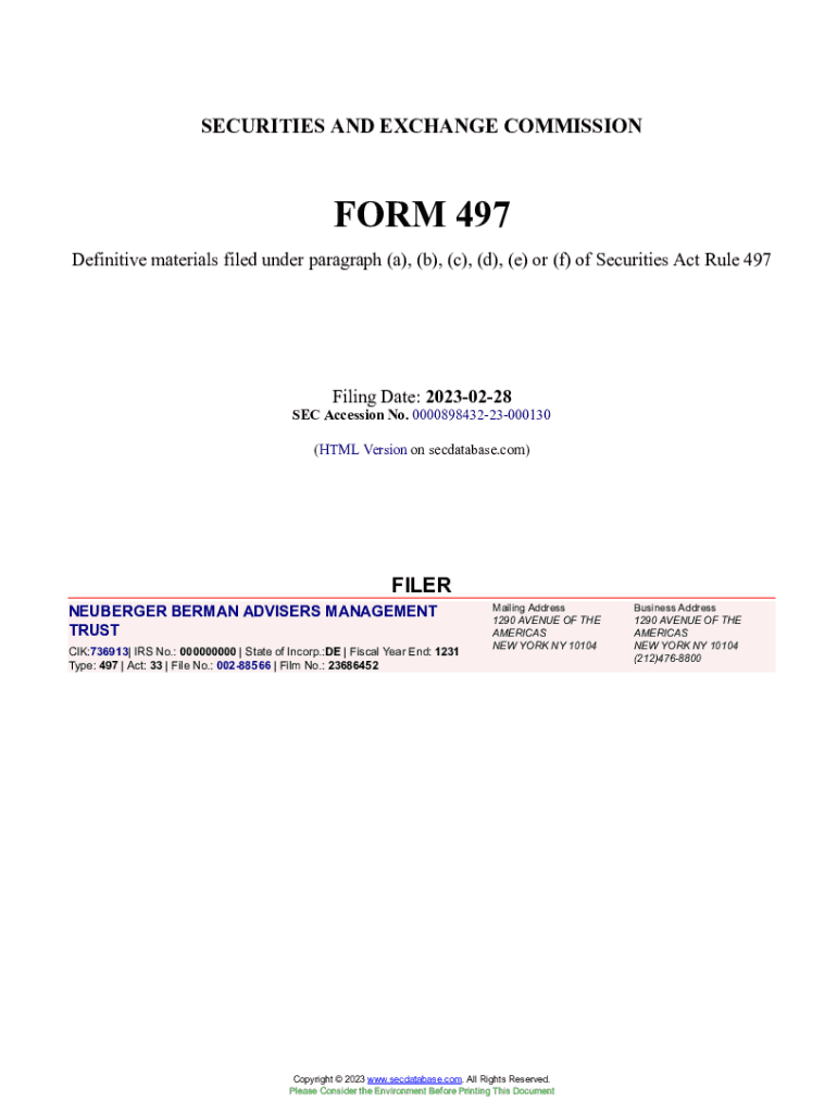 Get the free NEUBERGER BERMAN ADVISERS MANAGEMENT TRUST Form 497 Filed 2023-02-28. Accession Number
