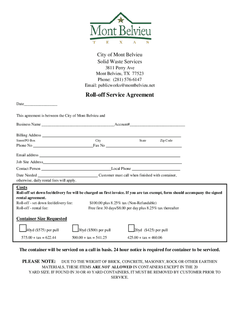 Email: publicworks@montbelvieu.netRolloff Service Agreement