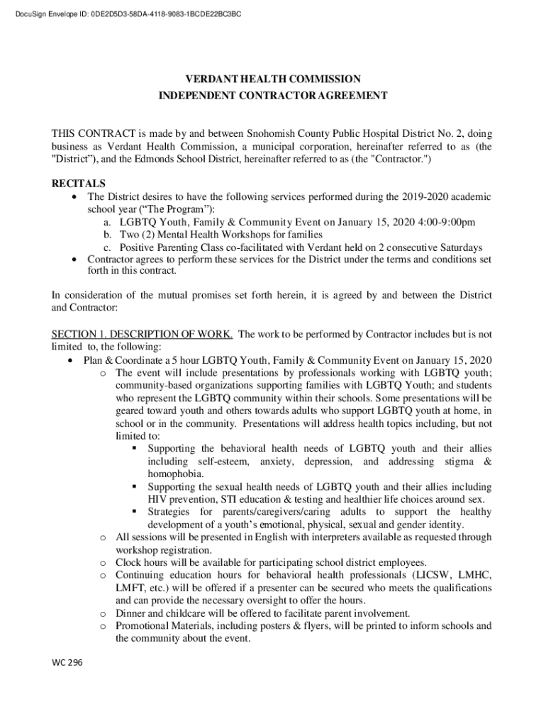 DocuSign Envelope ID: 0DE2D5D358DA411890831BCDE22BC3BCVERDANT HEALTH COMMISSION INDEPENDENT CONTRACTOR AGREEMENTS CONTRACT is made by and between Snohomish County Public Hospital District No. 2, doing