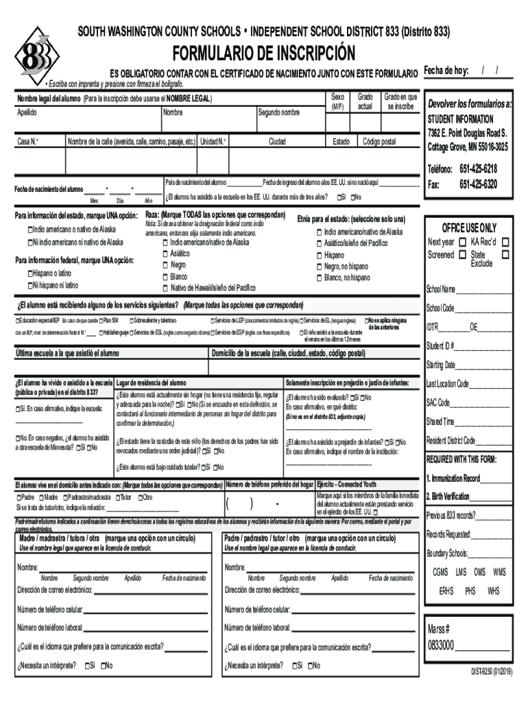SOUTH WASHINGTON COUNTY SCHOOLS INDEPENDENT SCHOOL DISTRICT 833 (District 833)FORMULA RIO DE INSCRIPTIONS OBLIGATORY COSTAR CON EL CERTIFICATE DE NASCIMENTO JUNTO CONE STE FORMULA RIO Tech DE how: