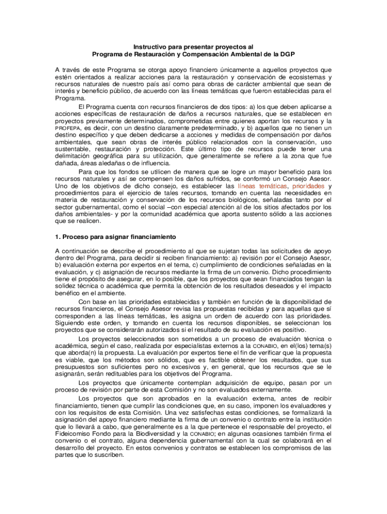 Obtener el gratis Instructivo para presentar proyectos para el Programa de Restauracin y Compensa...