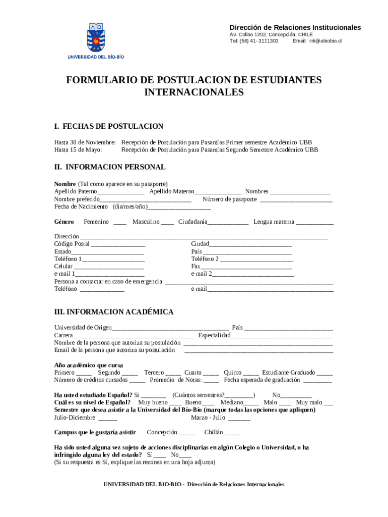 What is Lista de Chequeo para postular a la Universidad del Bo-Bo Form?