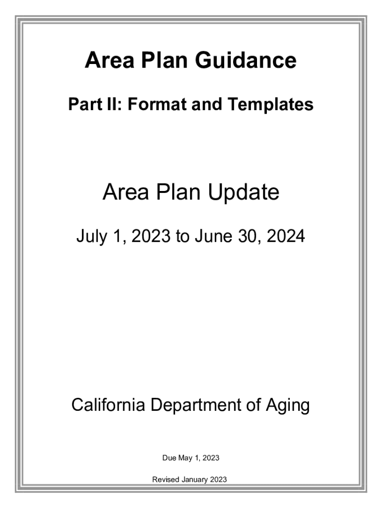 Area Plan Guidance Part II: Format and TemplatesArea Plan Update July 1, 2023, to June 30, 2024California Department of Aging Due May 1, 2023, Revised January 2023Table of Contents Overview .3Area