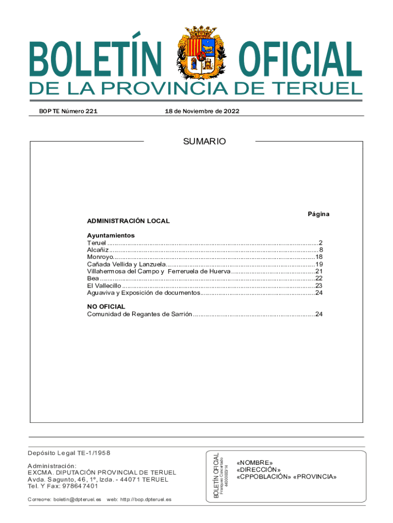 BOP TE Nero 22118 de November de 2022SUMARIOPgina ADMINISTRATION LOCAL Ayuntamientos Terkel ....................................................................................................................2
