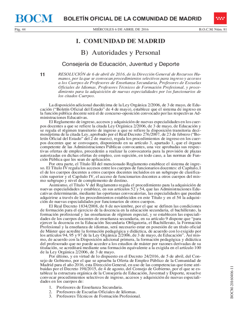 CIRCLES 6 DE APRIL DE 2016B. O.C.M. Nm. 81I. COMMUNIZED DE MADRID) Autodidacts y Personal
