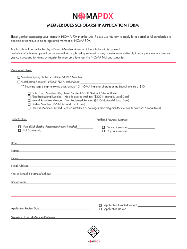 Get the free NOMA PDX - Scholarship Application Form