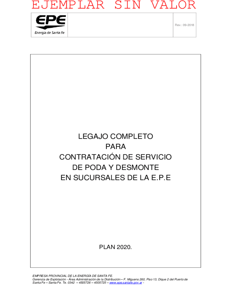 EXEMPLAR SIN VALOR EXEMPLAR SIN VALOR Rev.: 092018LEGAJO COMPLETE PARA CONTRATACIN DE SERVICE DE POD Y DESMOND EN SUCURSALES DE LA E.P.PLAN 2020.EMPRESS PROVINCIAL DE LA ENERGY DE SANTA FE. Garcia