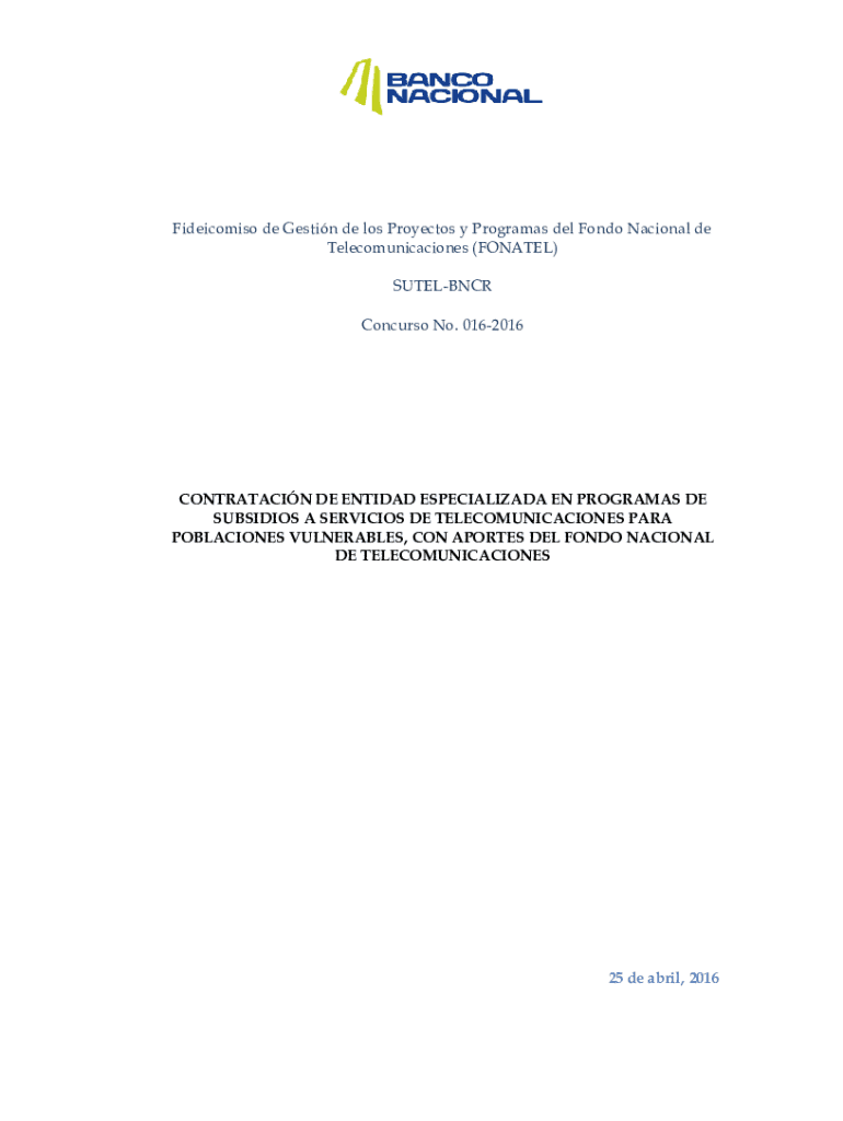 Concurs No. 0162016CONTRATACIN DE ENTICED SPECIALIZED EN PROGRAMS DE