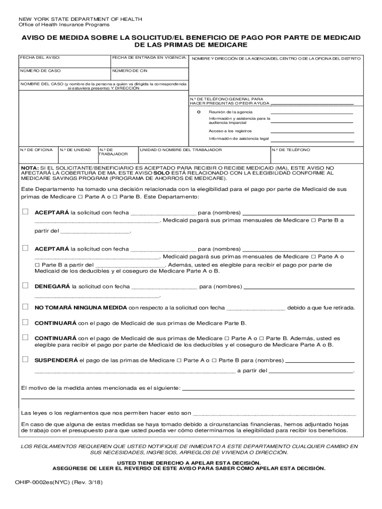Office of Health Insurance ProgramsAVISO DE MEDIA SORE LA SOLICITED/EL BENEFICIAL DE PAGO POR PART DE MEDICAID