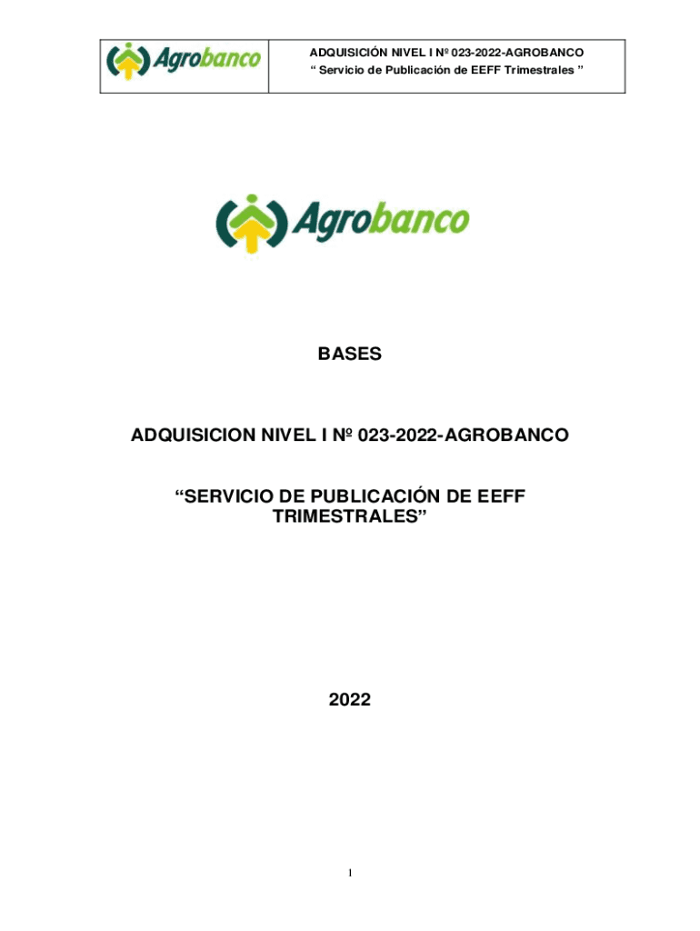 Service de Publicacin de EEFF Timescales BASESADQUISICION NOVEL I N 0232022AGROBANCO