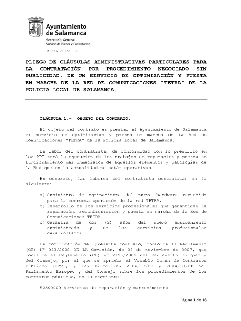 BP/AL2015/1140PLIEGO DE CLUSTERS ADMINISTRATIVE PARTICULARS PARA
