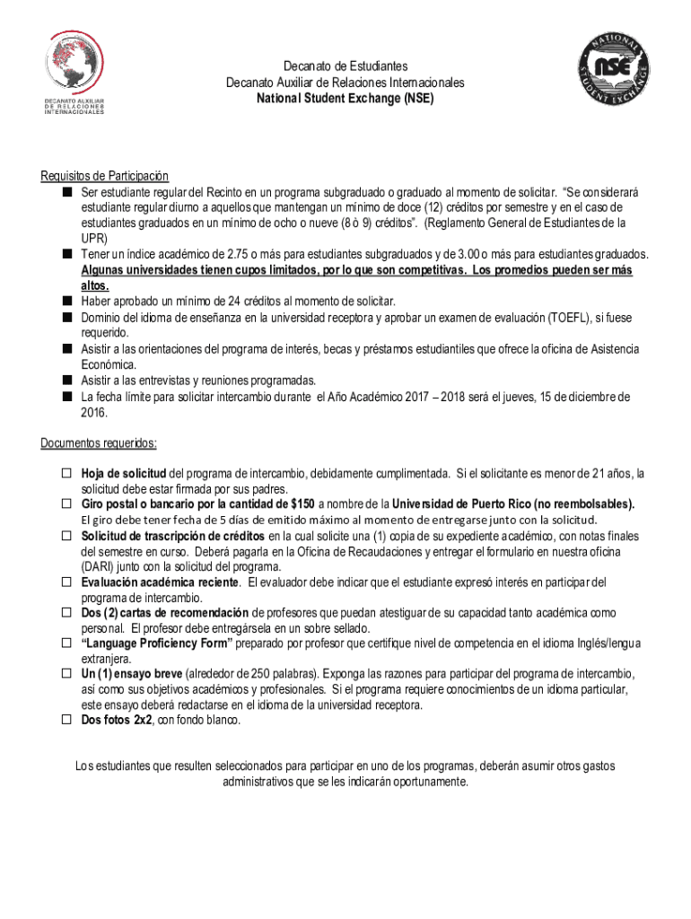 Get the free National Student Exchange Program (NSE) - estudiantes uprrp