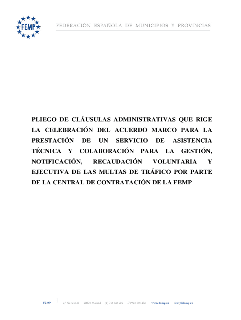 Obtener el gratis pliego de clusulas administrativas que rige la celebracin ...