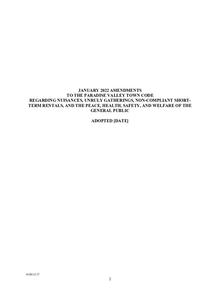 JANUARY 2022 AMENDMENTS TO THE PARADISE VALLEY TOWN CODE REGARDING NUISANCES, UNRULY GATHERINGS, NONCOMPLIANT SHORTER RENTALS, AND THE PEACE, HEALTH, SAFETY, AND WELFARE OF THE PUBLIC ADOPTED [DATE]4199115.271SECTION
