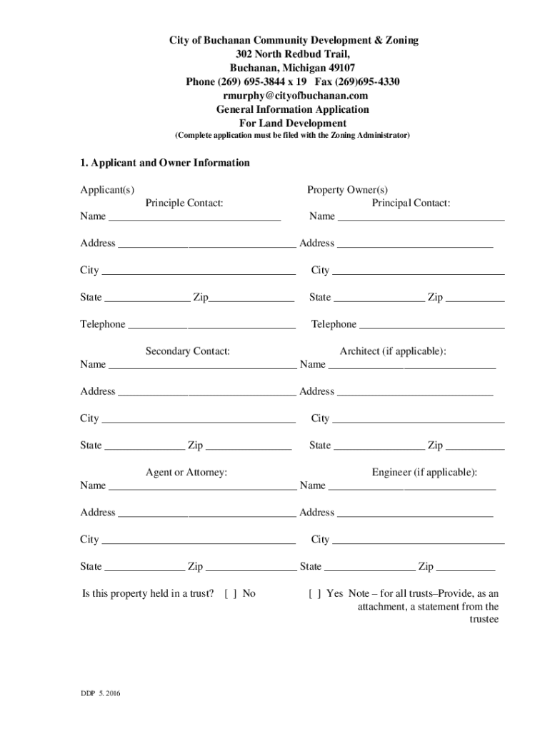 City of Buchanan Community Development & Zoning 302 North Redbud Trail, Buchanan, Michigan 49107 Phone (269) 6953844 × 19 Fax (269)6954330 rmurphy@cityofbuchanan.com General Information Application