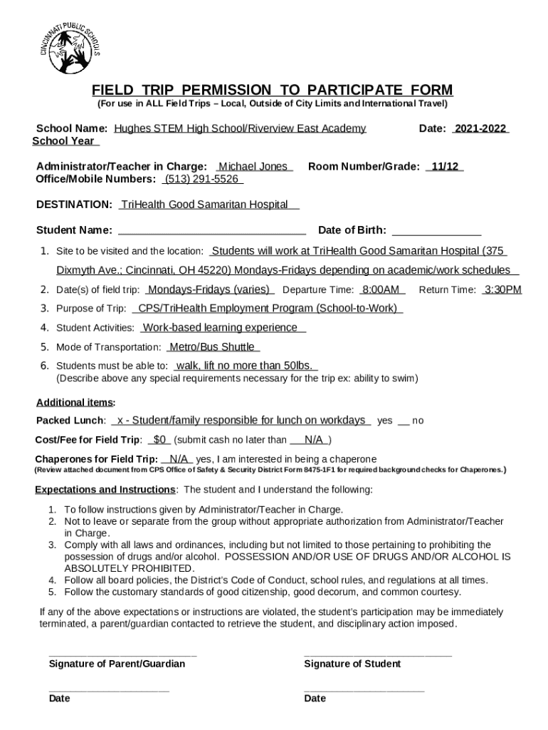 Instructions for the form STUDENT FIELD TRIP PARTICIPATION AUTHORIZATION ...