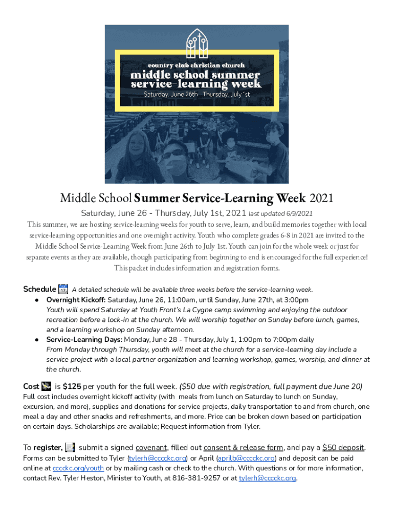 This summer, we are hosting service learning weeks for youth to serve, learn, and build