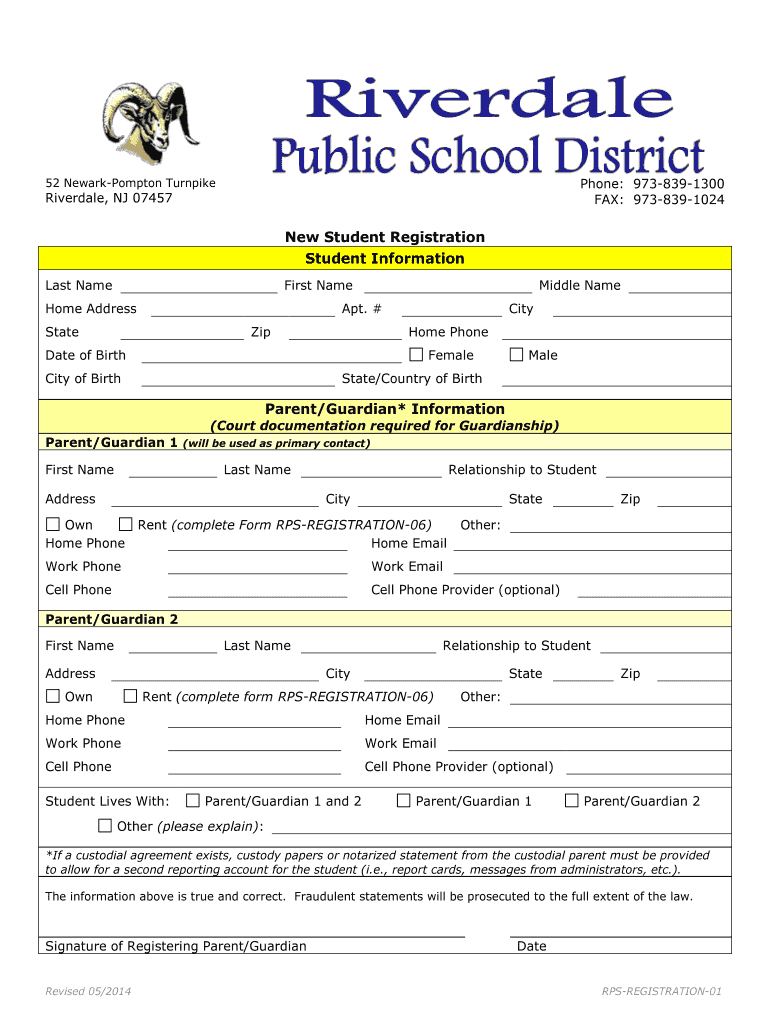 Get the free New Student Registration Student Information... - rpsnj