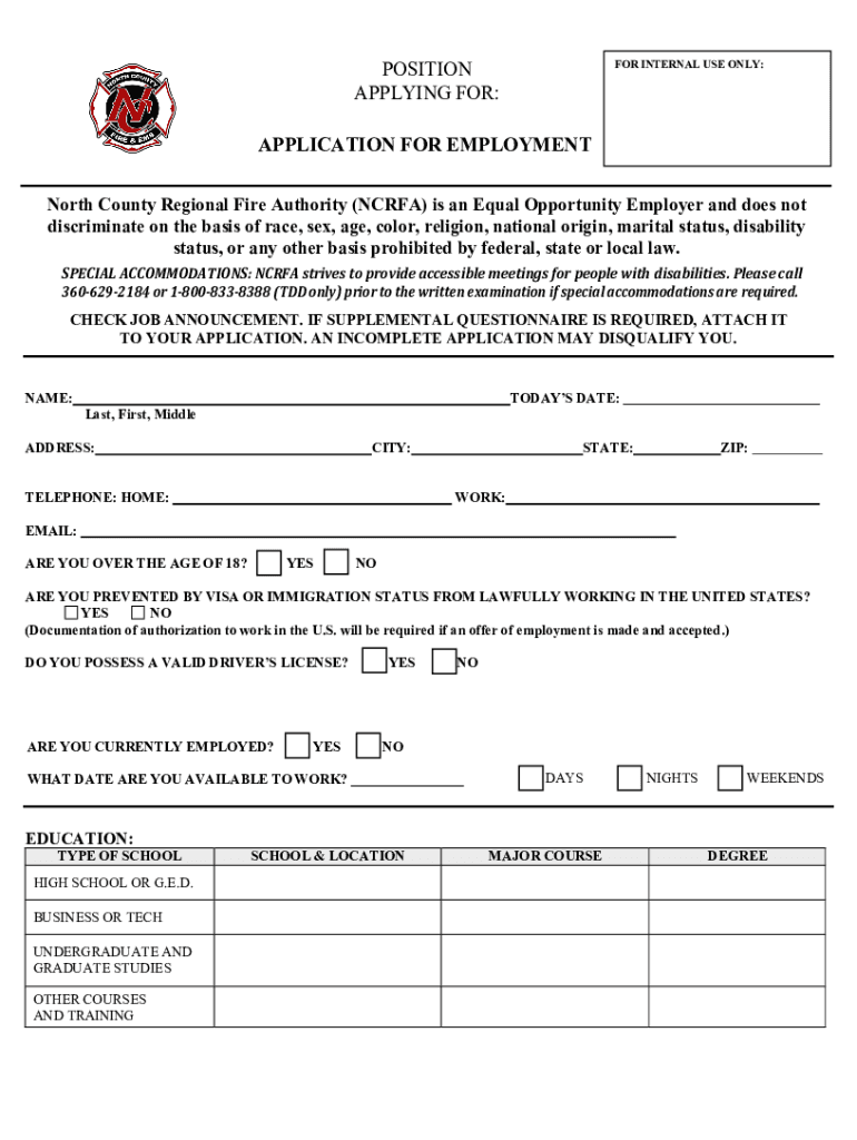 North County Regional Fire Authority serving the Cities of Arlington and Stan wood as well as communities of Bryant, Freeborn, and Warm BeachCreating an Eligibility List nonadministrative Assistant