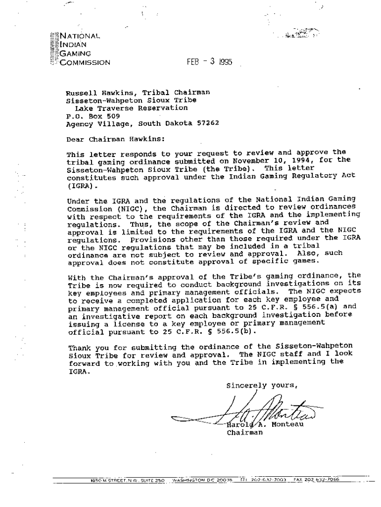 Get the free Notice of Approved Class III Tribal Gaming Ordinance - cybercemetery unt