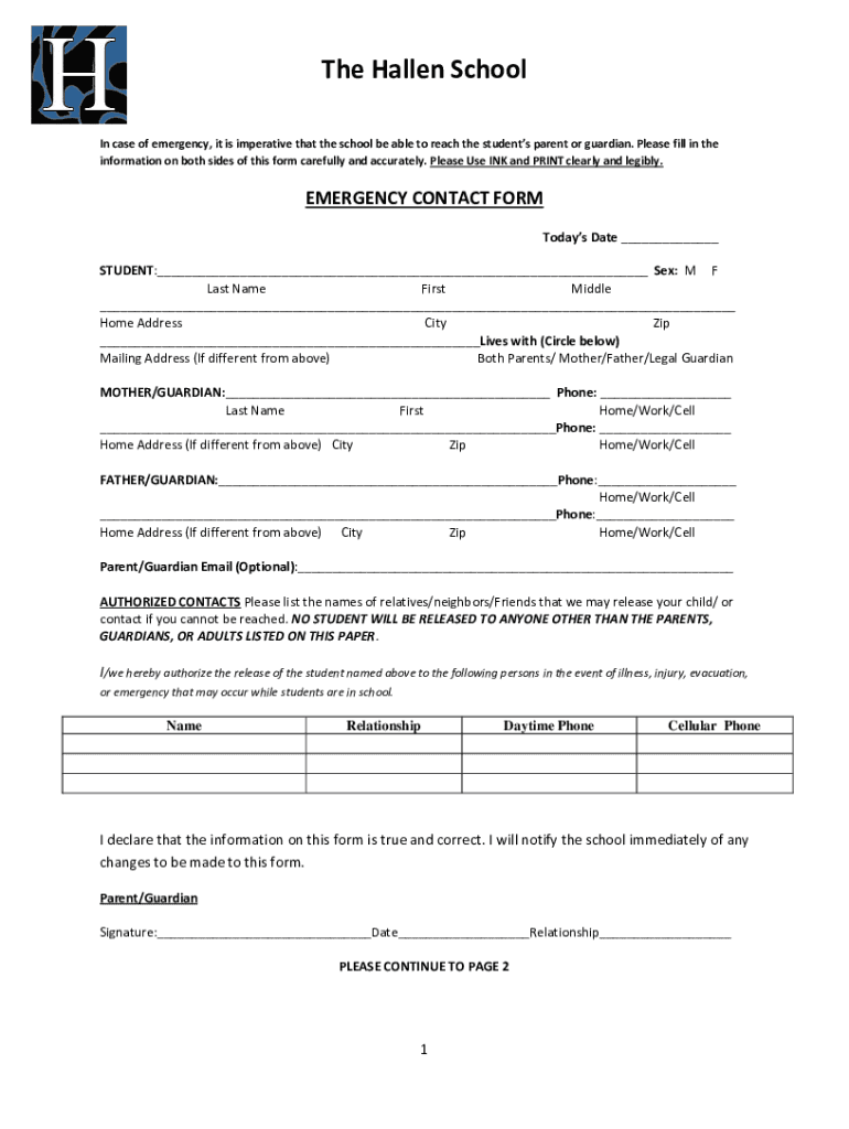 The Fallen School In case of emergency, it is imperative that the school be able to reach the students parent or guardian. Please fill in the information on both sides of this form carefully and accurately.