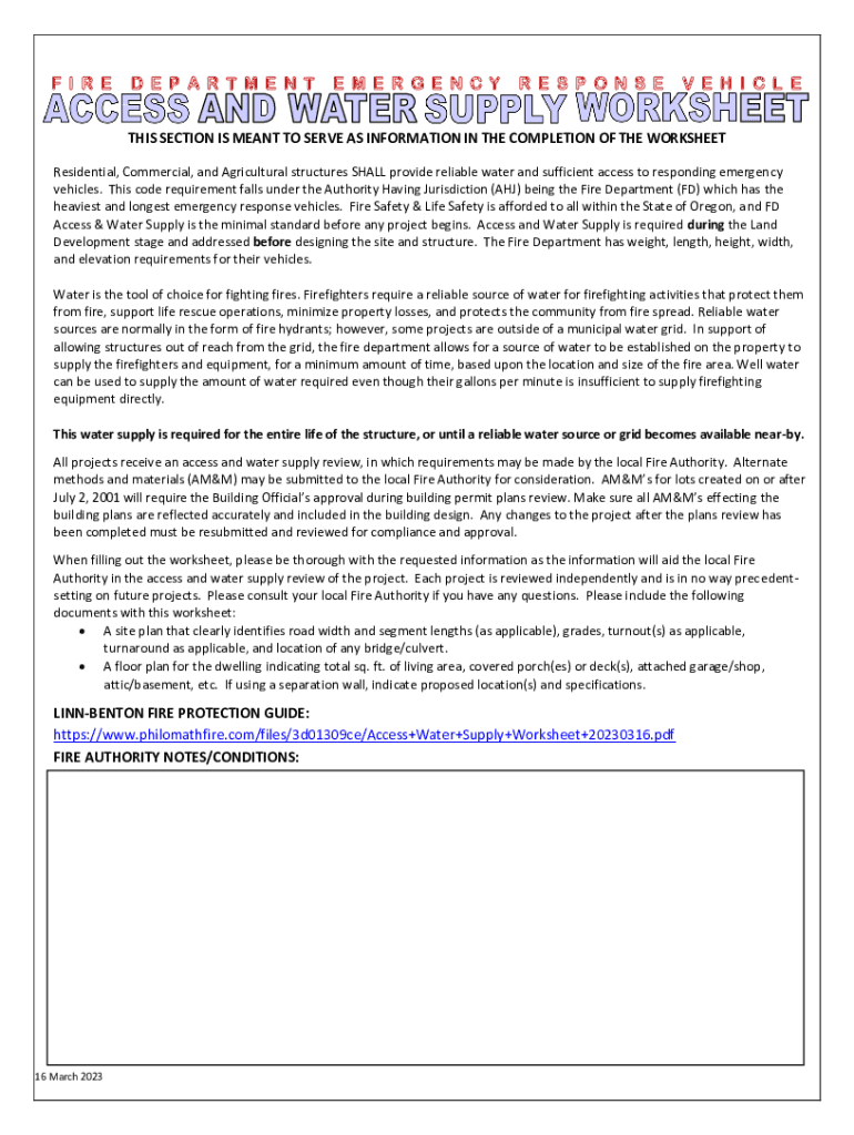 F I R ED E P A R T M E N TE M E R G E N C YR E S P O N S EV E H I C LE THIS SECTION IS MEANT TO SERVE AS INFORMATION IN THE COMPLETION OF THE WORKSHEET Residential, Commercial, and Agricultural structures