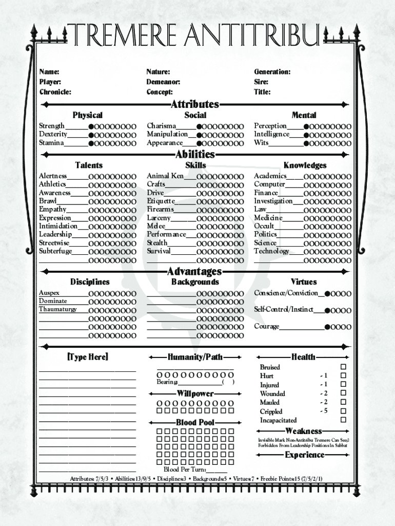Get the free tremere ANTITRIBU - MrGone's Character Sheets