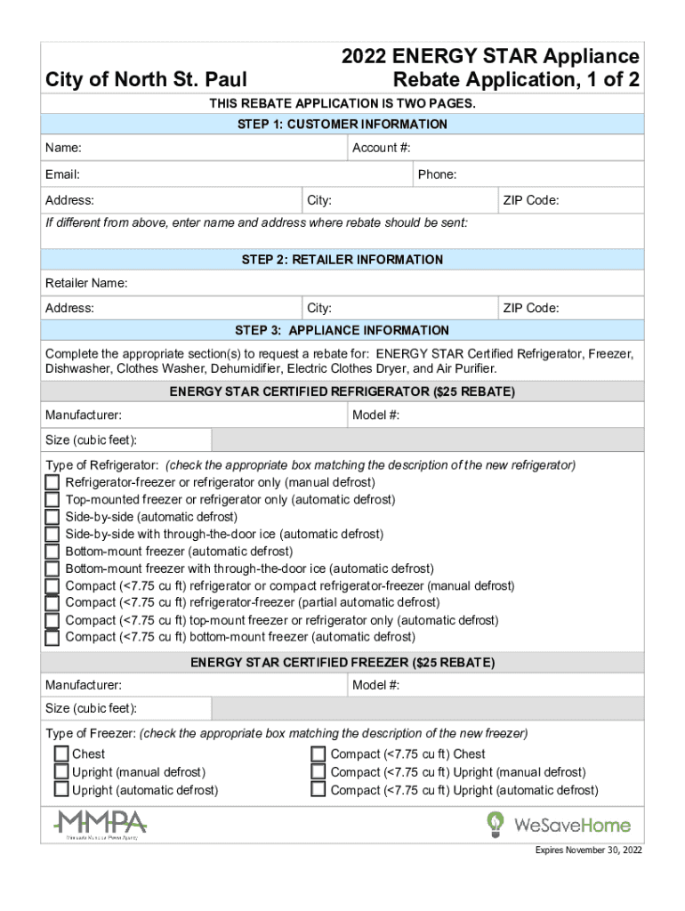 City of North St. Paul2022 ENERGY STAR Appliance Rebate Instructions participating in the Save program, you can save energy and earn a rebate when you purchase a new ENERGY STAR certified appliance