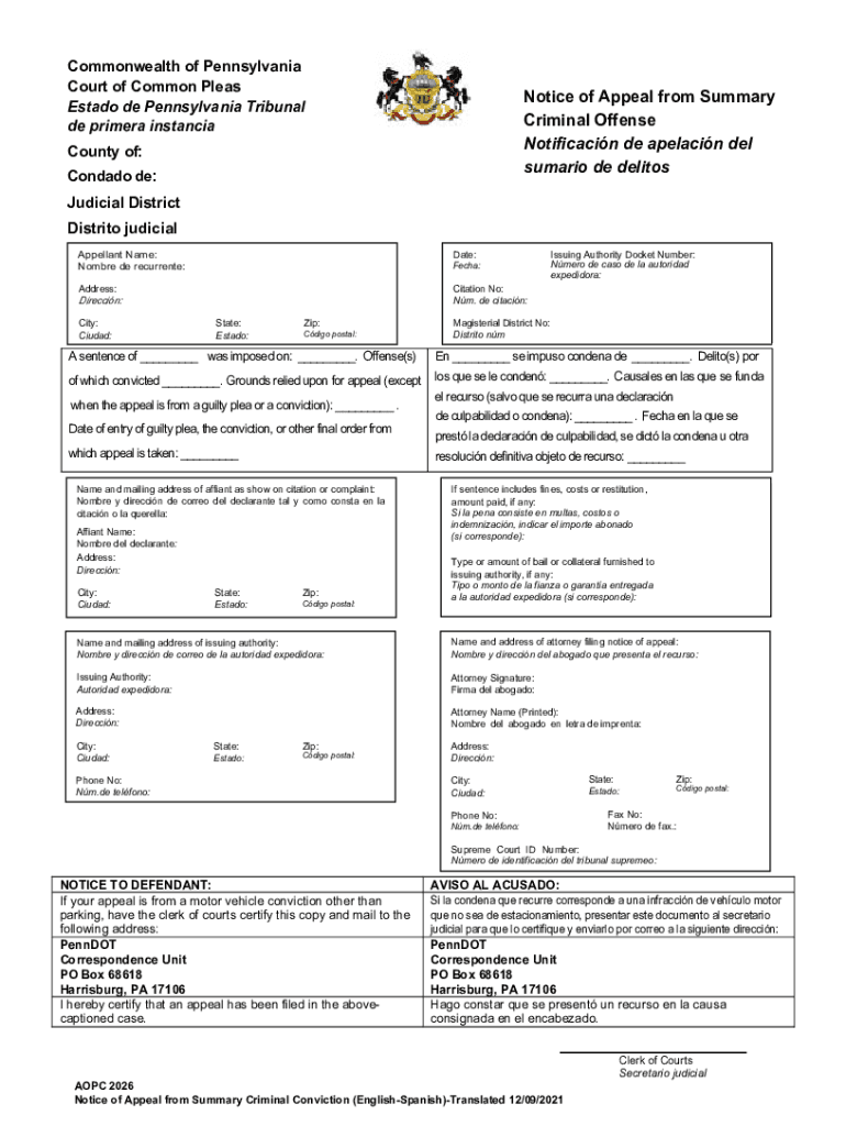 Obtener el gratis Notice of Appeal from Summary Criminal Offense ...