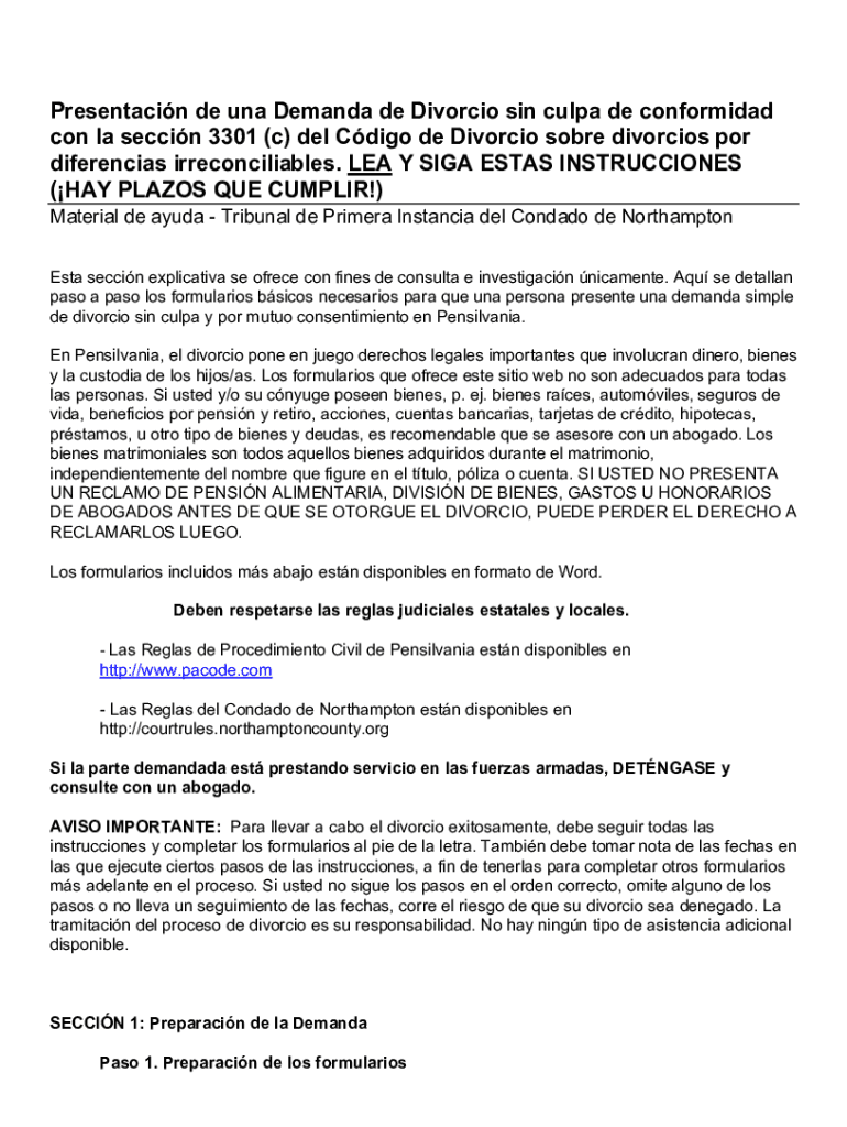 Presentation de RNA Demand de Divorcio sin cuppa DE conforming