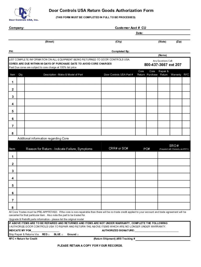 Email, fax, or share your door controls usa return form via URL. You can also download, print, or export forms to your preferred cloud storage service.