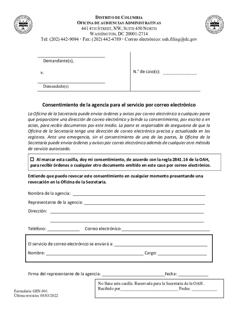 Tel: (202) 4429094 Fax: (202) 4424789 Core electric: oah.filing@dc.gov
