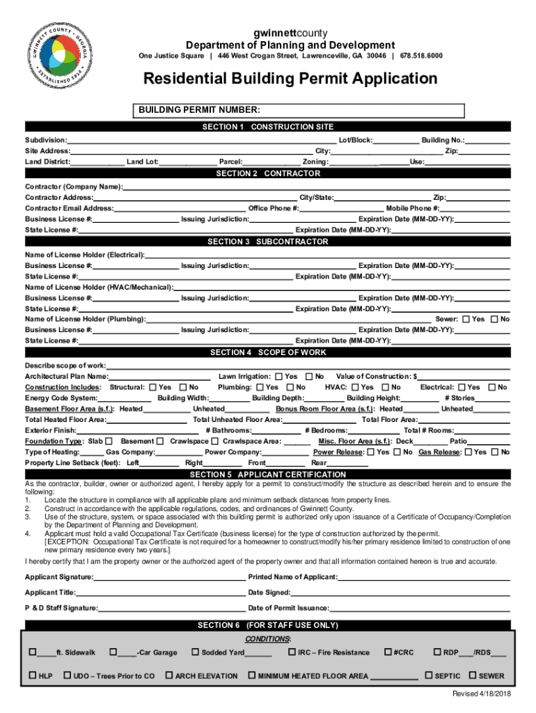 Gwinnettcounty Department of Planning and Development Justice Square | 446 West Brogan Street, Lawrenceville, GA 30046 | 678.518.6000Residential Building Permit Application BUILDING PERMIT NUMBER: