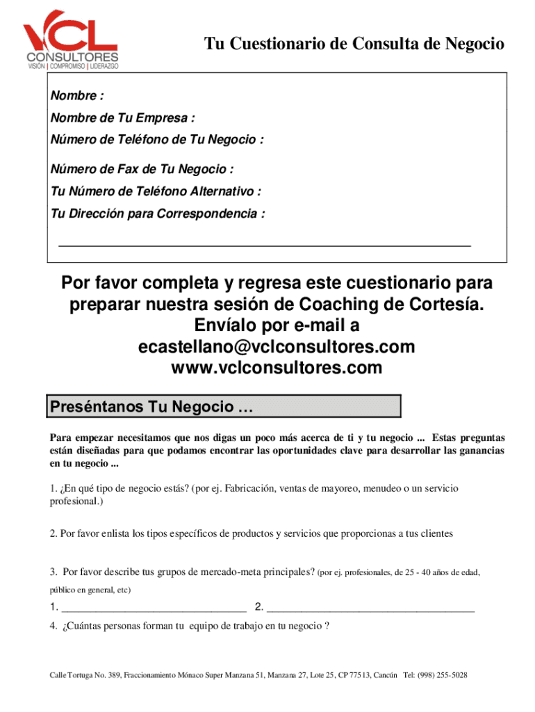 Tu Cuestionario de Consulta de Negocio