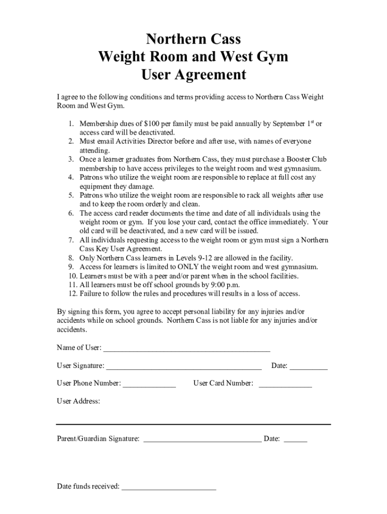 Get the free Northern Cass Weight Room and West Gym User Agreement