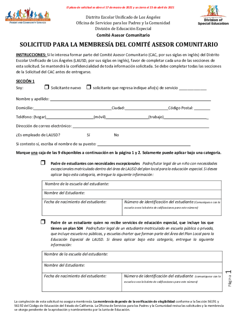 El plaza DE solicited SE are El 17 de Mario de 2021 y SE sierra El 23 de April de 2021Distrito Escolar Unified de Los Angeles