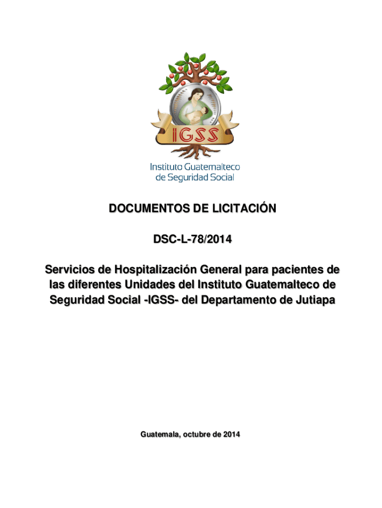 DOCUMENTS DE LIMITATION DSCL78/2014 Services de Hospitalizacin General para patients DE leis differences Updates Del Institute Guatemalteco de Seguridad Social IGAS Del Department de JutiapaGuatemala,